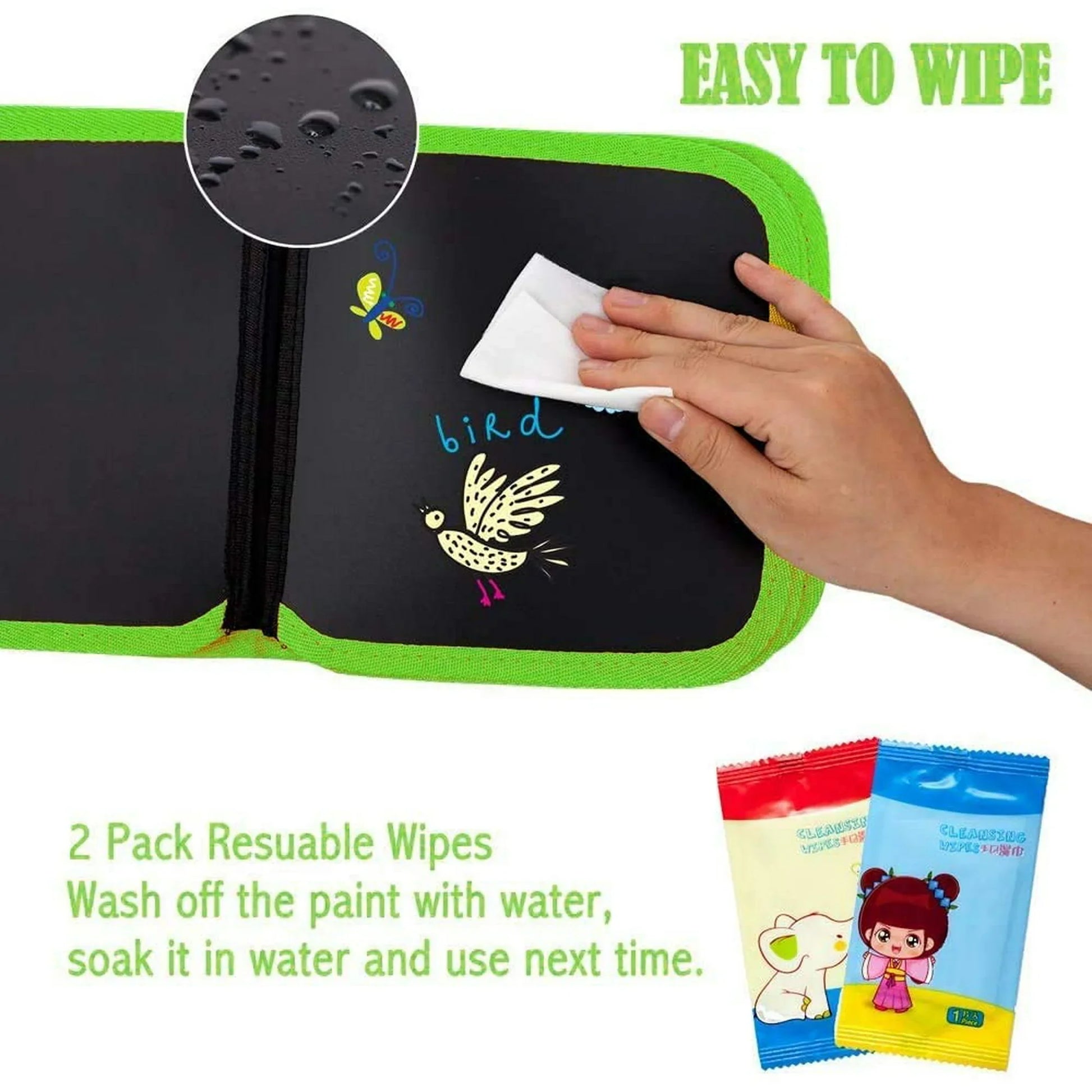 Easy-to-Use Wipes for Effortless Cleanup Make cleanup a breeze with the included wipes. The Doodle Magic Book comes with 2 wipes that effortlessly erase doodles. ensuring a fresh canvas for the next burst of creativity.